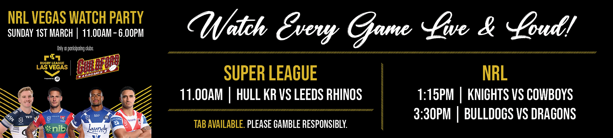 Start your NRL season the right way. Gather your mates, throw on your team colours and watch the Vegas atmosphere come alive.
