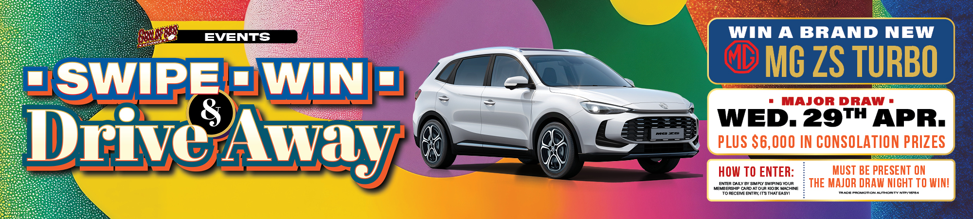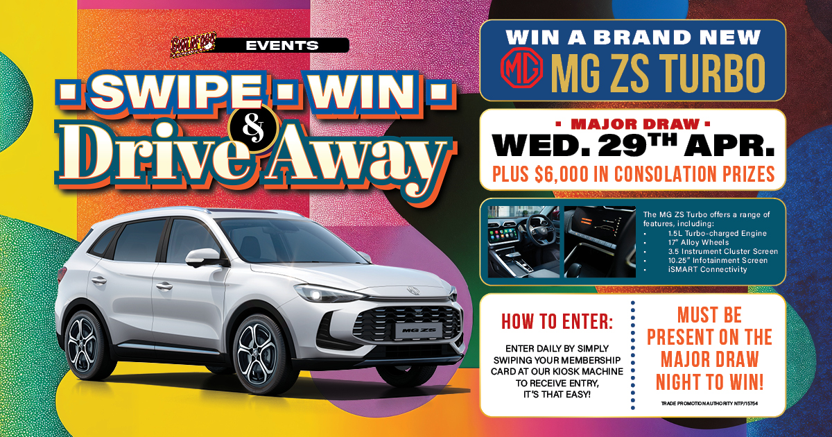 Swipe, Win And Driveaway! Win a brand new MG ZS Turbo at Guildford Leagues Club!